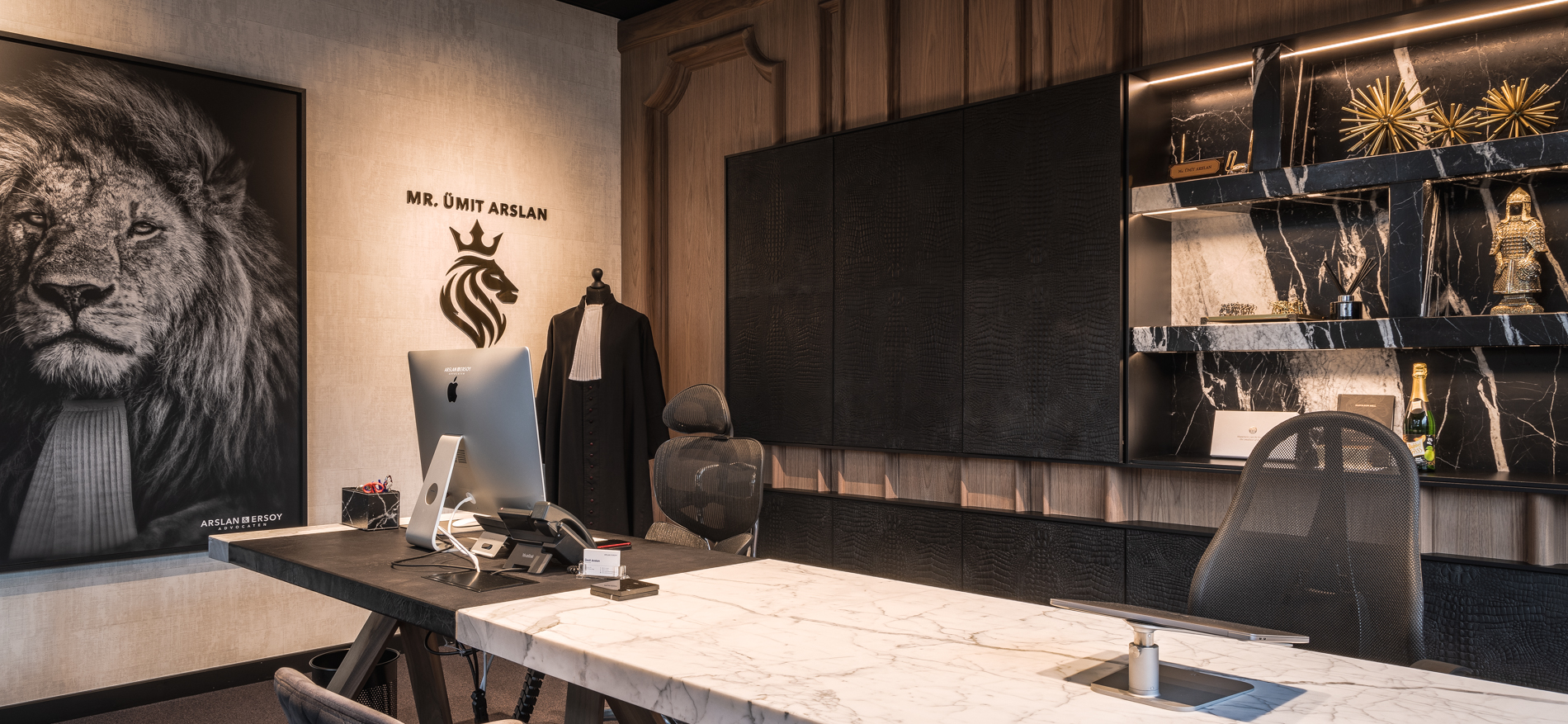 Es begann mit einer Internetsuche und einem Anruf bei den Leuten von WSBDesign.com. Dieses Telefongespräch führte zu einem Besuch im neu gestalteten Büro in Scherpenzeel. Besonders das „Grand de Luxe Office“ fand die Anwaltsfamilie Arslan fantastisch und diente als Inspiration für die Bürogestaltung in Den Haag.