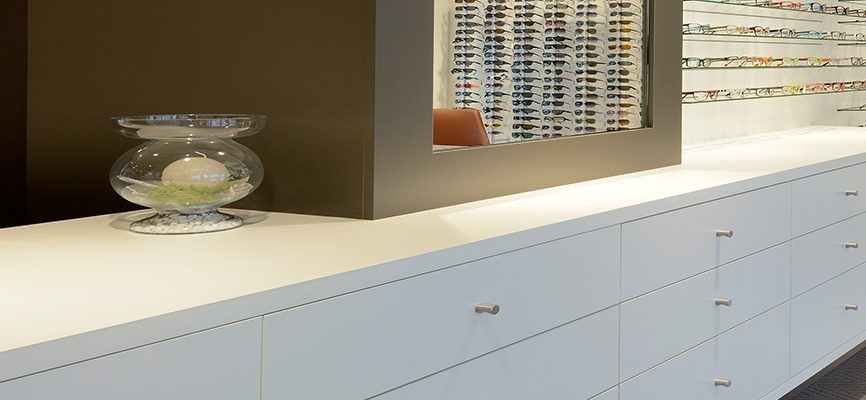 Einrichtung optik Naumann von WSB Ladenbau bril presentatie store fixtures optician