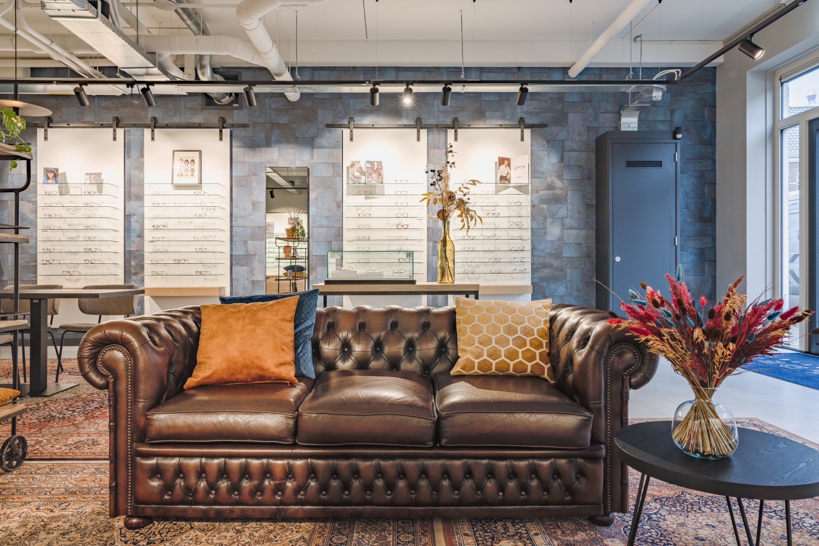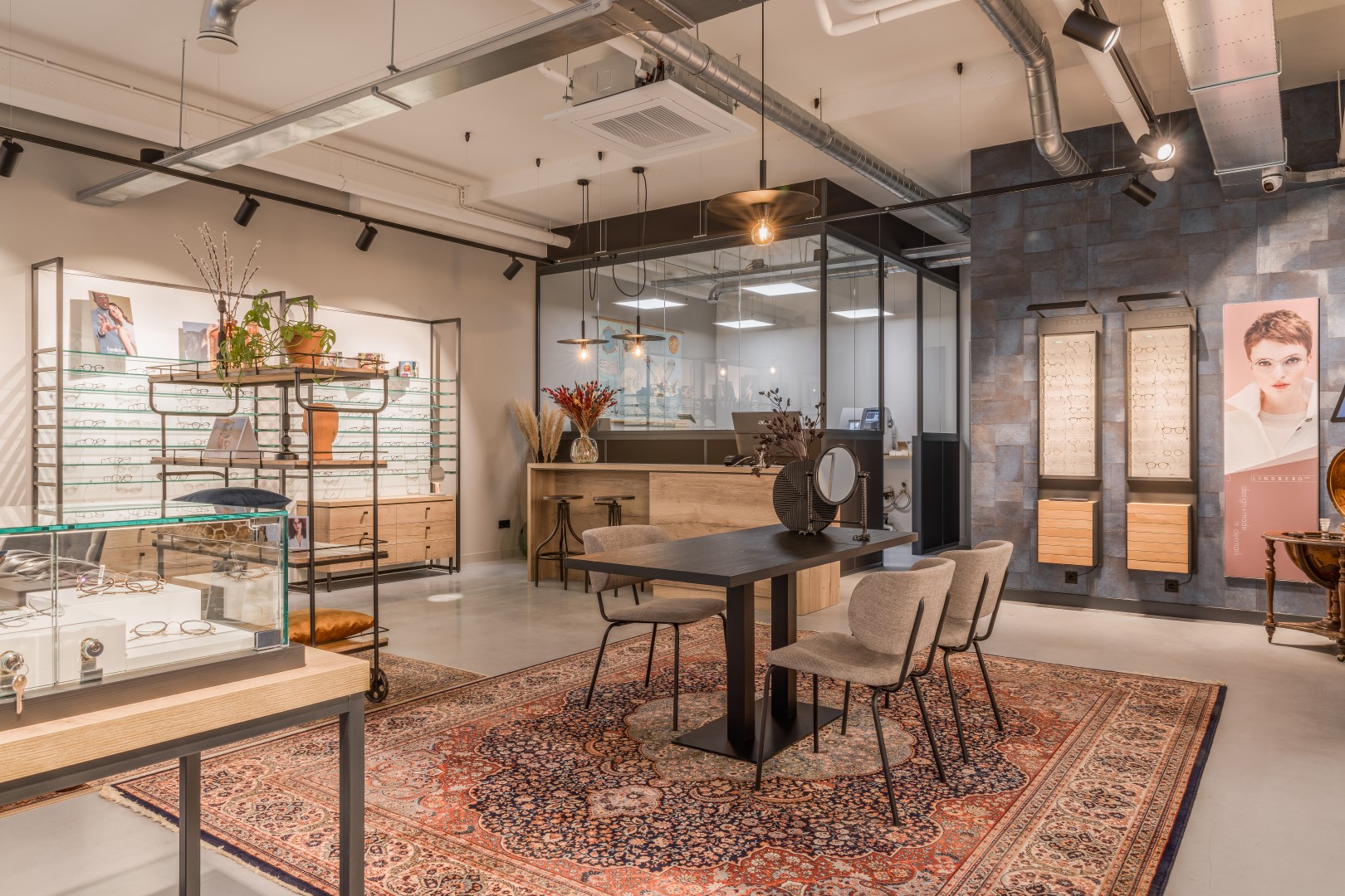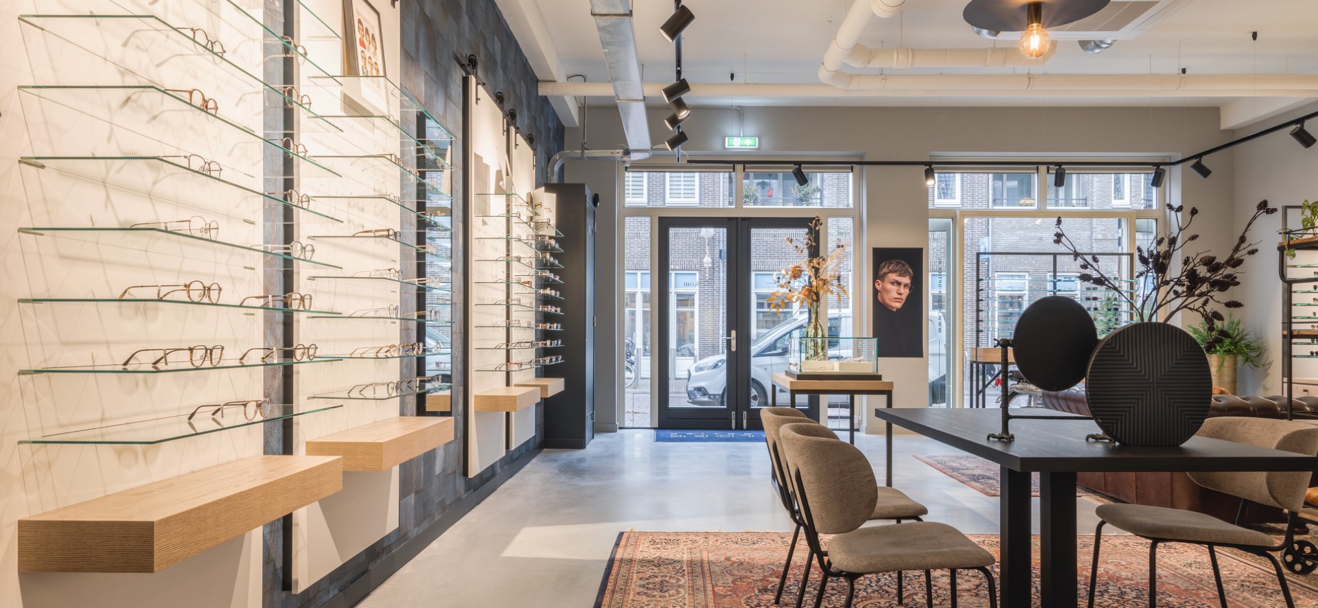 Durch die Kombination mit hochwertigen Materialien und Strukturen wie Tapeten und Dekoration ist ein stilvolles Ganzes entstanden. Werkstatt und Refraktion sind komplett durch Stahlzargen vom Shop getrennt. Eine entspannte Warte- und Barbestuhlung verleihen dem Laden ein offenes Erscheinungsbild. Hier kann sich jeder ein schönes Paar Brillen gönnen, aber es bleibt auch Zeit für ein Schwätzchen und einen guten Espresso. Ein High-End-Shopping-Erlebnis zu einem erschwinglichen Preis. Das Endergebnis ist ein Volltreffer, die ersten Reaktionen und Ergebnisse sind durchweg positiv!”