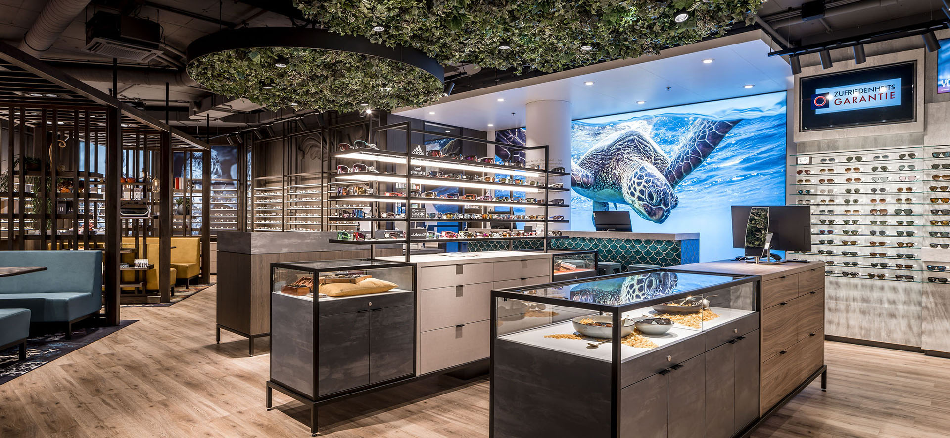 Viele Sonnenbrillen und viele Korrekturrahmen wurden bereits in diesem Store-Konzept verkauft. Das hat aber nur zugenommen. Dies geschieht zum einen durch die Kommunikation einer sehr klaren Preisstrategie an die Kunden und zum anderen durch die Schaffung eines Erlebnisses. Das Konzept spielt mit dem Licht, wo es sein sollte. Die Theke und die Rückwände haben schöne, reichhaltige Materialien. Wir haben bewusst ein für Österreich A-typisches Geschäft entworfen.